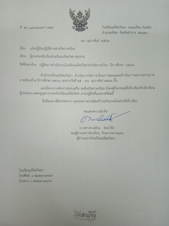 371 ม.10 ต.แจ้ห่ม อ.แจ้ห่ม จ.ลำปาง 52120